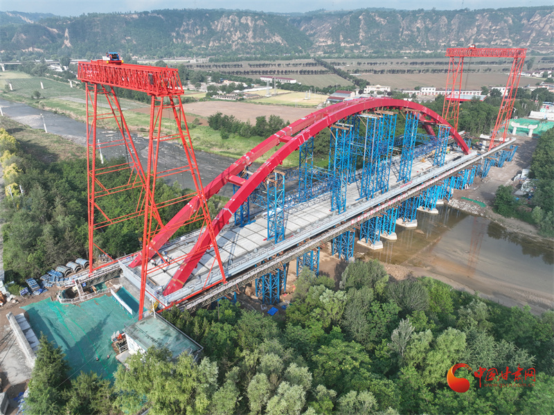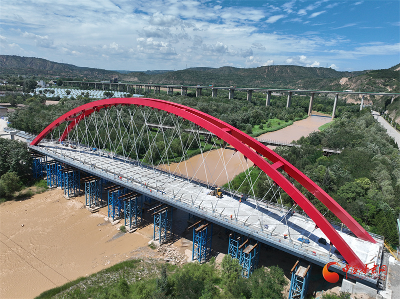 今年5月20日,長慶橋主體拱肋吊裝完成,大橋主體輪廓初現(xiàn),紅橋橫跨涇河,以極高辨識度被人們關(guān)注。