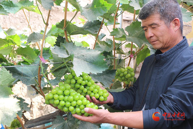 采摘園內,工人們正忙著為訂單挑選、采摘、裝盒……“我們這里光照足,結出的‘陽光玫瑰’葡萄果粒飽滿緊湊,果香中帶著玫瑰花香,脆滑爽口、馥郁香甜,顧客都比較喜歡吃。葡萄價格每斤20元,目前整體收益不錯。”基地負責人王煜輝說。