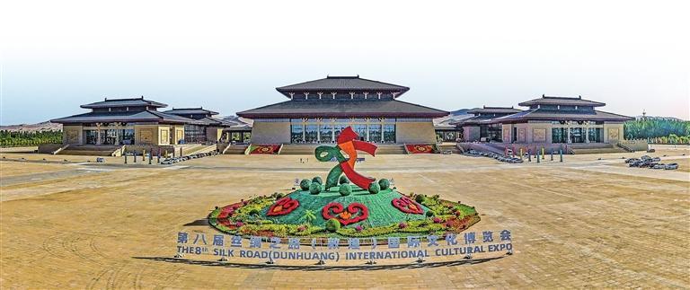 第八屆絲綢之路(敦煌)國際文化博覽會準(zhǔn)備就緒,主場館裝扮一新。 田蹊