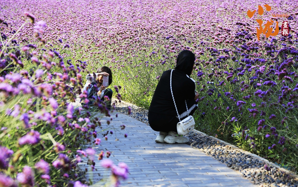 浪漫的花堤與黃河自然相擁,像大地鋪開(kāi)的彩色錦緞。最先撞進(jìn)眼球的,是萬(wàn)壽菊的熱烈,一簇簇、一片片,風(fēng)過(guò)時(shí)便齊齊搖晃,再往前走,成片成片的馬鞭草漫過(guò)視野,恍惚間才驚覺(jué)這是獨(dú)屬于永靖的混搭浪漫。