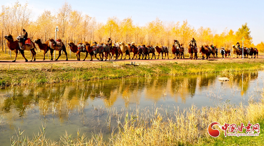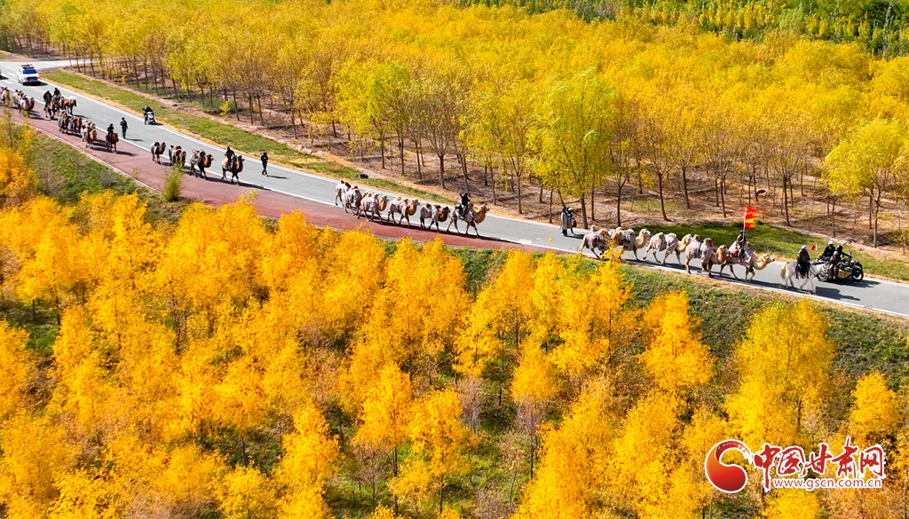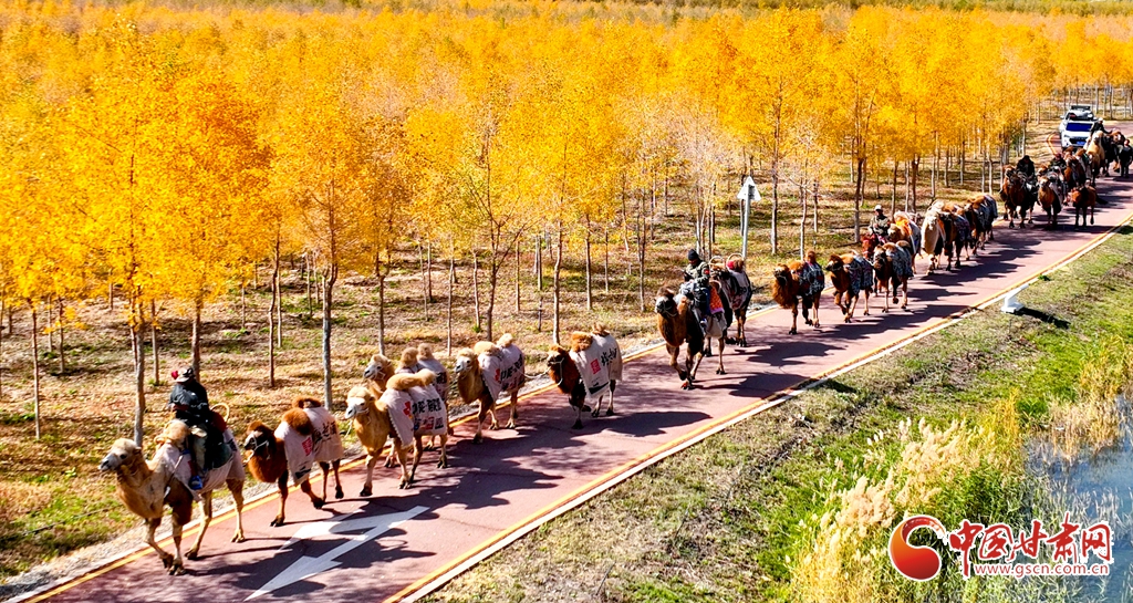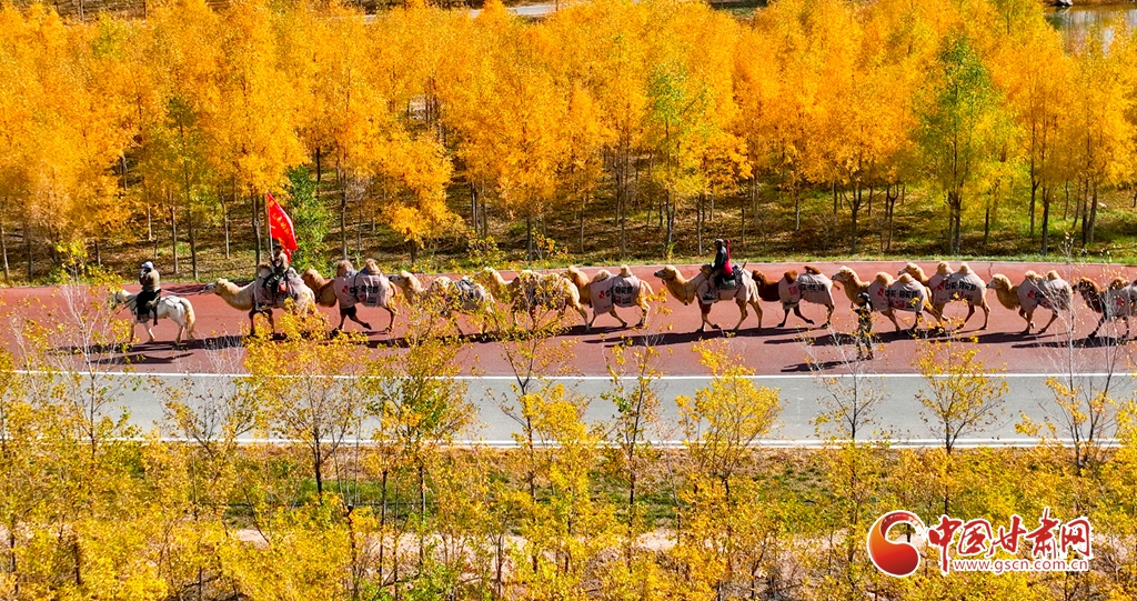 金秋十月,張掖市甘州區(qū)黑河林場(chǎng)萬畝胡楊林迎來流金季節(jié)。10月15日,一支駝隊(duì)行進(jìn)其間,領(lǐng)略這最美的時(shí)光。這片昔日亂石林立、滿目瘡痍的黑河亂石灘,如今已成為6萬畝的城市森林,游人、駝隊(duì)行進(jìn)其中,與金色林海共同構(gòu)成了一幅動(dòng)人的生態(tài)畫卷。