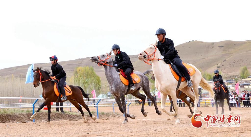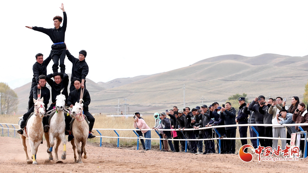 10月14日,山丹縣的一場賽馬會上,騎手們正策馬揚鞭,為游客展示多項馬術項目。山丹縣毗鄰祁連山自然保護區(qū)和山丹軍馬場,坐擁優(yōu)質草場資源,養(yǎng)馬歷史逾兩千年,馬文化底蘊深厚,產業(yè)基礎扎實。近年來,當地圍繞馬文化主題,建設了賽馬場、觀光馬道、育馬基地等設施,致力于為游客與馬術愛好者打造一個獨具特色的馬文化體驗地。